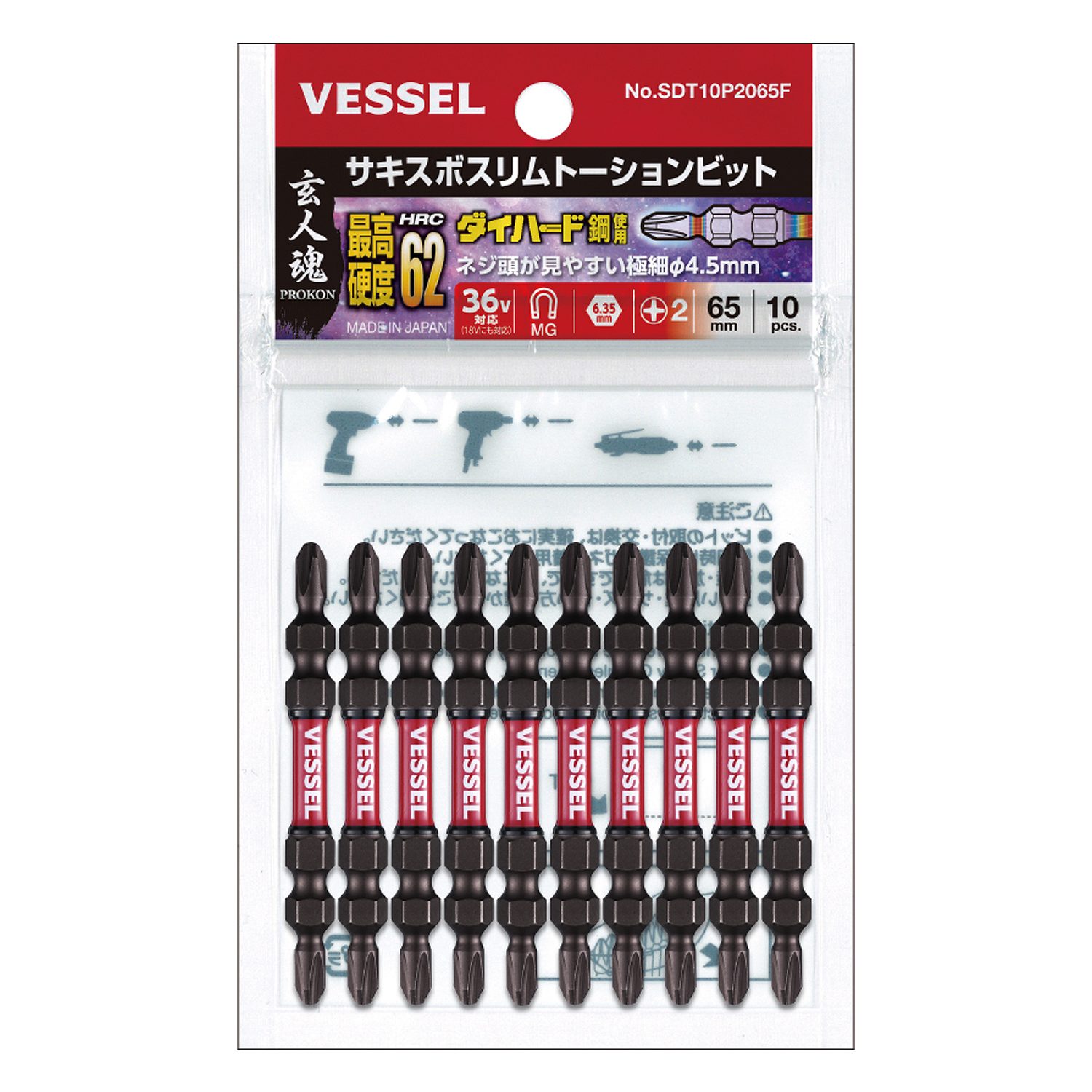 SAKISUBO 细型扭力批头 10支装 No.SDT10P2065(+2×φ4.5×65 10支)
