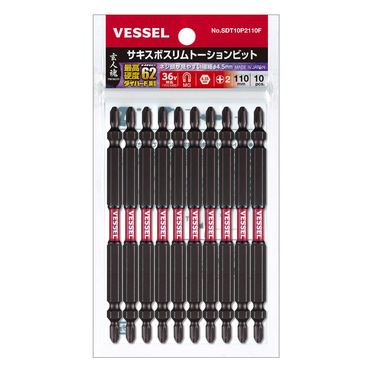 SAKISUBO 细型扭力批头 10支装 No.SDT10P2110(+2×φ4.5×110 10支)