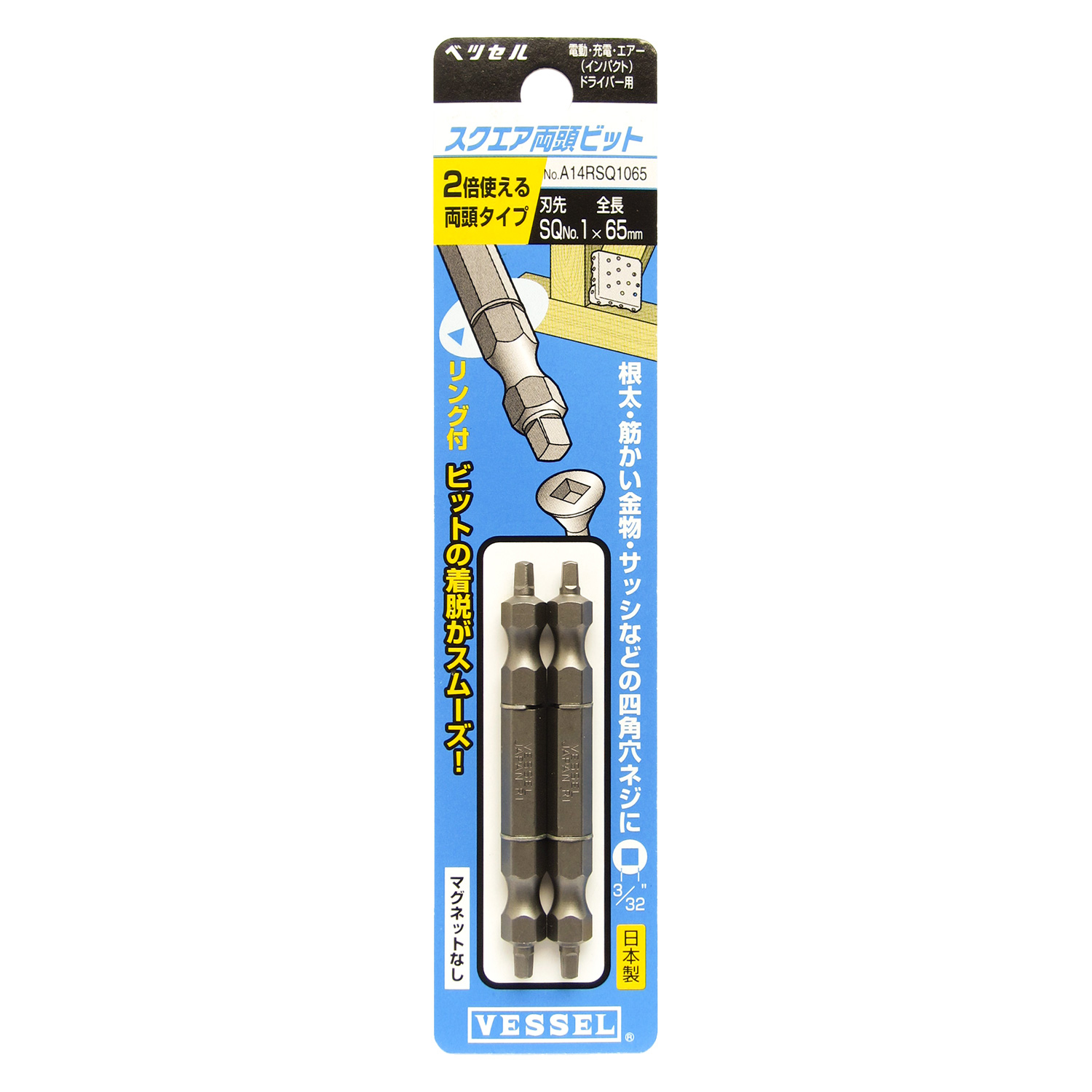 双头四方头批头 2支装 No.A14RSQ1065(SQ1×65 2支)
