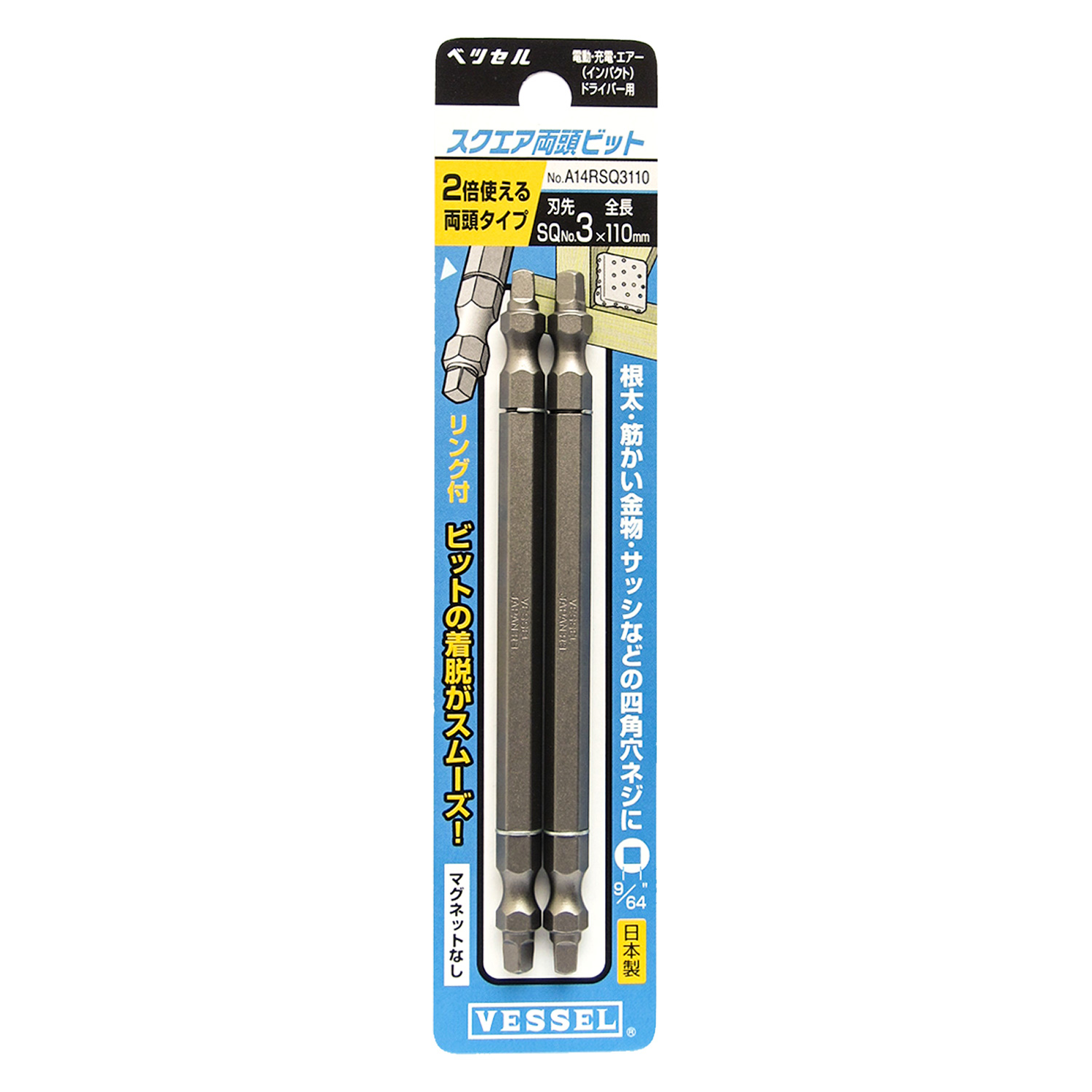 双头四方头批头 2支装 No.A14RSQ3110(SQ3×110 2支)