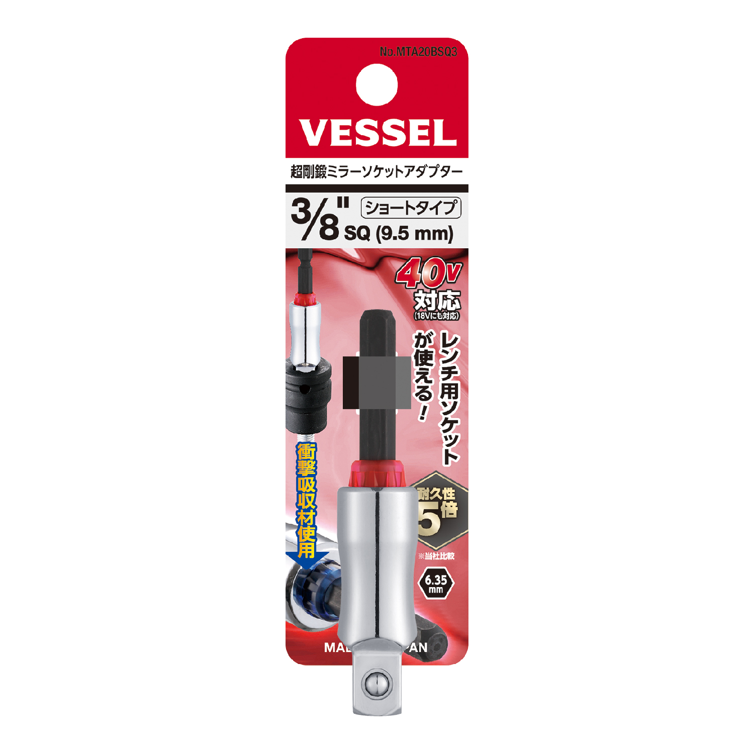 MTA20BSQ3(3/8"SQ 9.5mm 短型) | SQ | 3/8"SQ(9.5mm) | 77 | 54 | 5 | 100 | 4907587026798 |