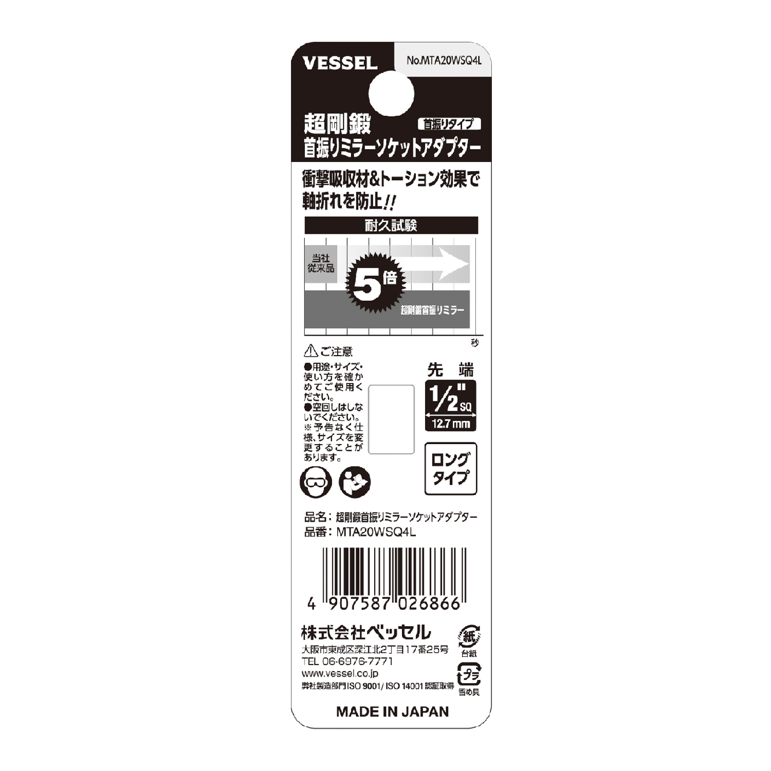 MTA20WSQ4L(1/2"SQ 12.7mm 加长型) | SQ | 1/2"SQ(12.7mm) | 115 | 87 | 5 | 100 | 4907587026866 |