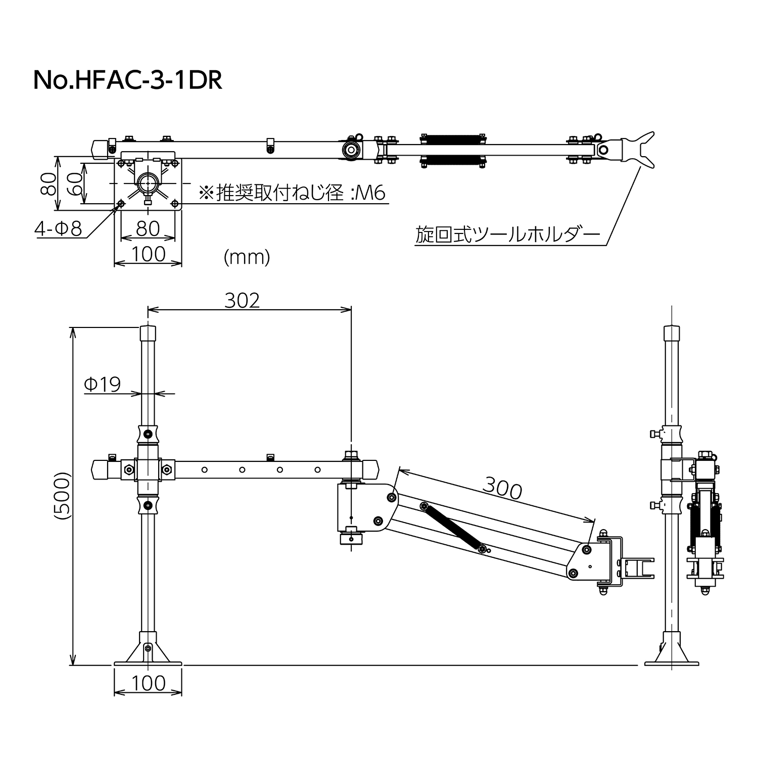 | 标示 | 最大反作用力(N.m) | 适用工具重量(kg) | 适用工具外径(mm) | 活动范围(mm) |