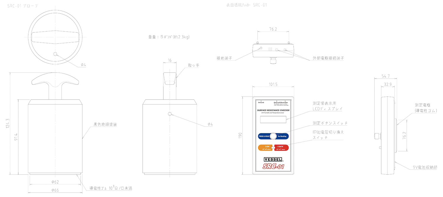 190×101.5×54.7 340 10 V(R <1.0×10 6 ohm或ohm / sq),100 V(R≥1.0×10 6 ohm或ohm / sq) 4907587020505