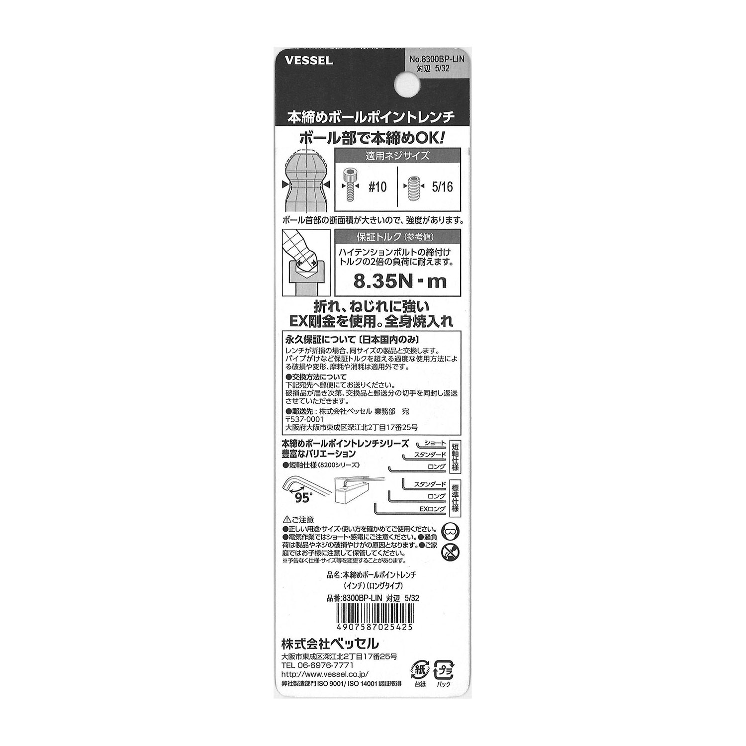 标示 主体总长mm L型扳手的短边尺寸mm 主体重量g 内包装数量 外包装数量 日本JAN条形码