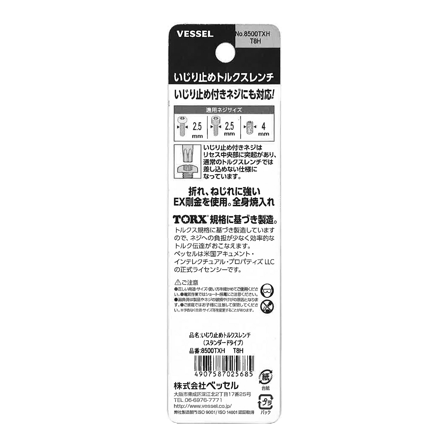 标示 主体总长mm L型扳手的短边尺寸mm 主体重量g 内包装数量 外包装数量 日本JAN条形码