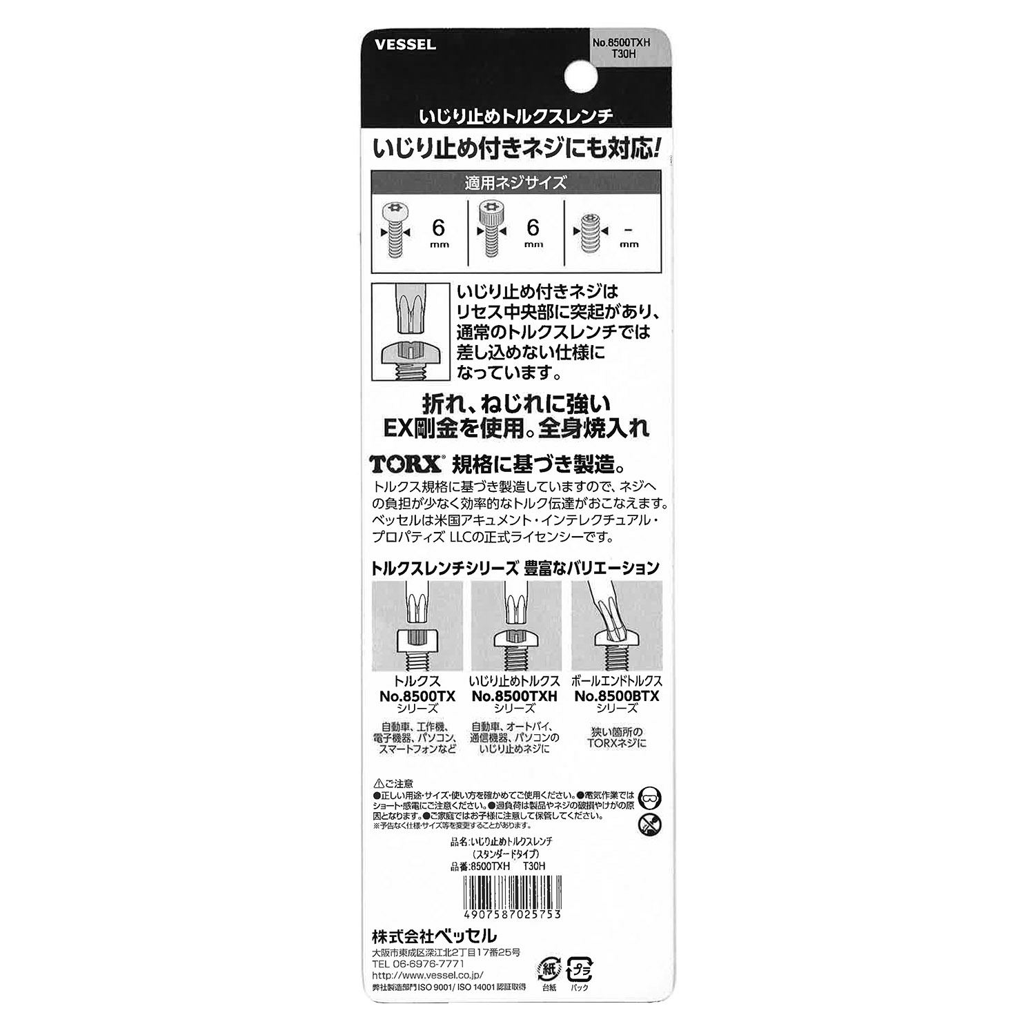 标示 主体总长mm L型扳手的短边尺寸mm 主体重量g 内包装数量 外包装数量 日本JAN条形码