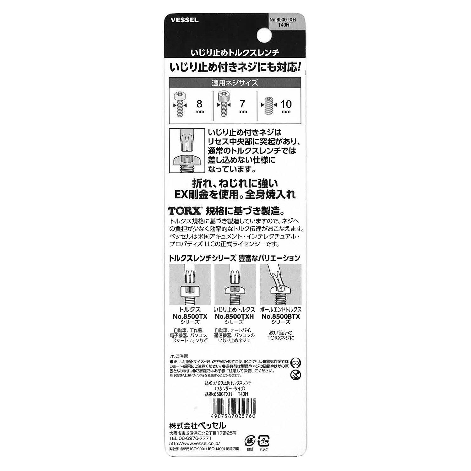 标示 主体总长mm L型扳手的短边尺寸mm 主体重量g 内包装数量 外包装数量 日本JAN条形码